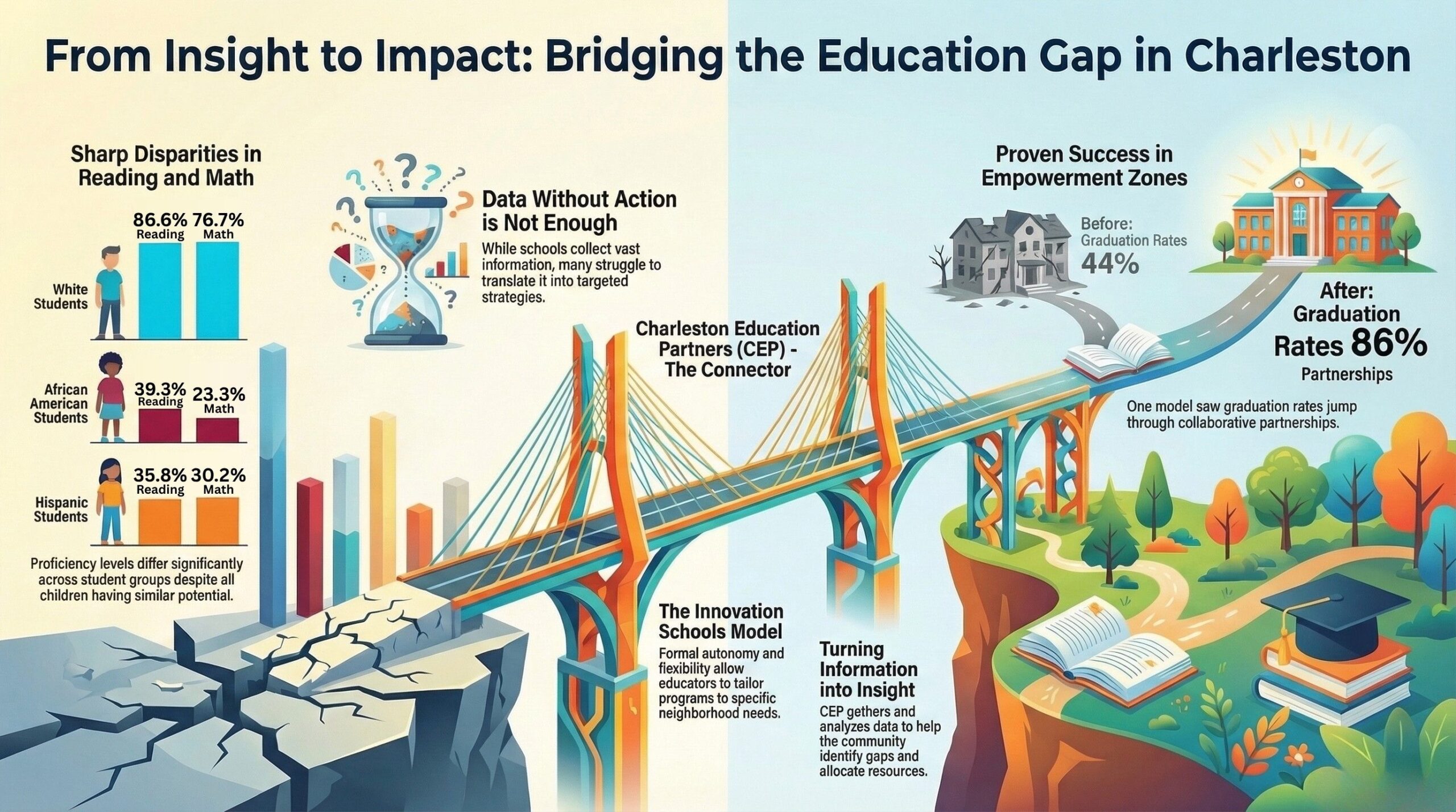 查尔斯顿教育合作伙伴组织(CEP)之所以存在,是因为本地区仍有太多的儿童没有充分体验到教育的承诺。成绩仍然参差不齐。机会仍然不一致。为孩子们提供服务的系统往往各自为政,而不是相互配合。.
